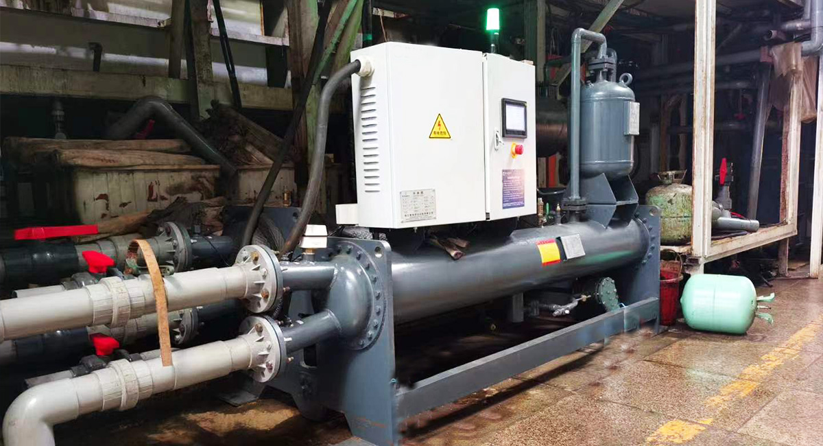 水冷冷水機(jī)利用殼管蒸發(fā)器使水與冷媒進(jìn)行熱交換,冷媒系統(tǒng)在吸收水中的熱負(fù)荷,使水降溫產(chǎn)生冷水后,通過壓縮機(jī)的作用將熱量帶至殼管式冷凝器,由冷媒與水進(jìn)行熱交換,使水吸收熱量后通過水管將熱量帶出外部散失。